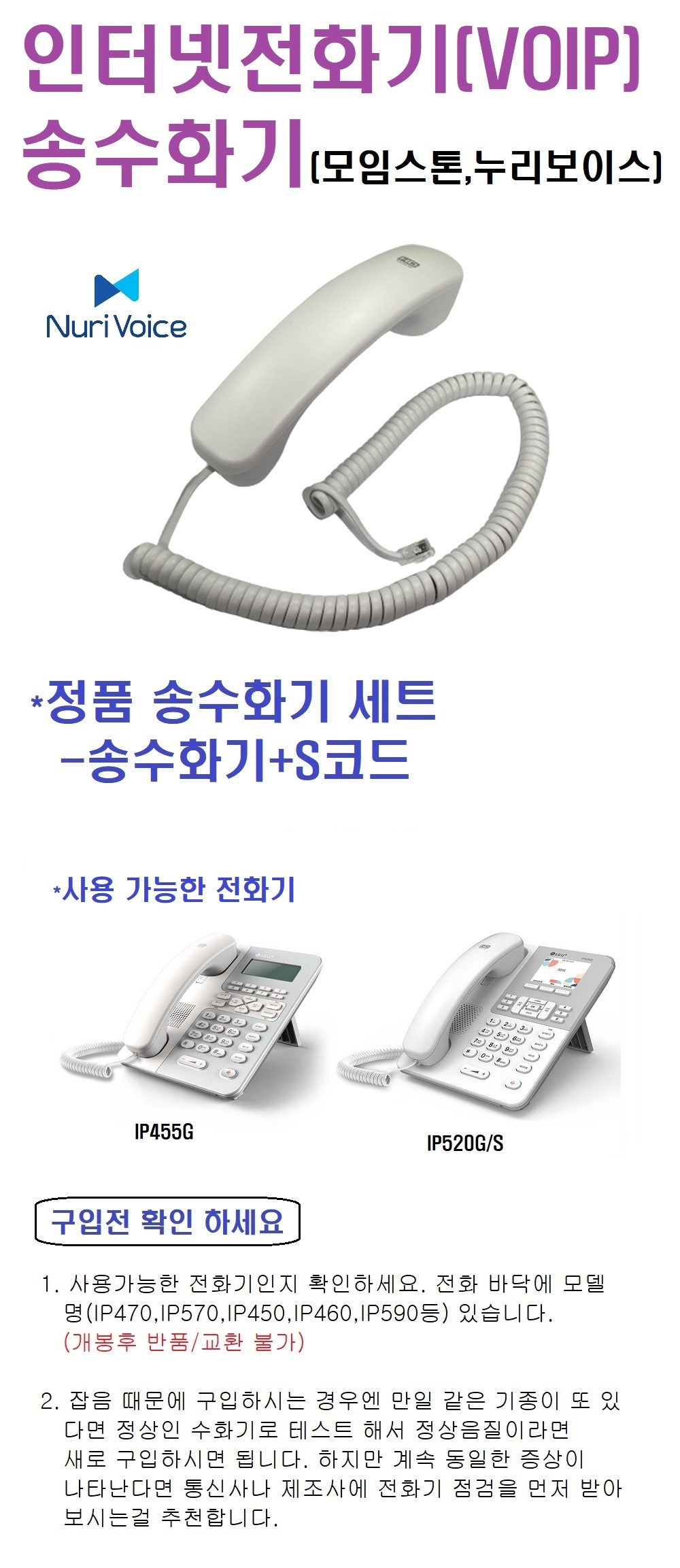 송수화기 세트/IP455G/IP455S/IP520S/IP520G/전용/수화기/HANDSET/모임스톤/누리보이스/정품/컬코드선 포함